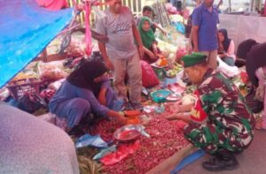 Puncak Sorik Marapi – Babinsa Koramil 14/Kotanopan Kodim 0212/Tapsel Sertu Maris melaksanakan pengecekan harga dan ketersediaan sembakol...