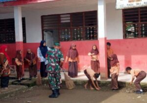 Puncak Sorik Marapi – Babinsa Koramil 14/Kotanopan Kodim 0212/Tapsel Sertu Maris melaksanakan kegiatan Karya Bhakti atau gotong...