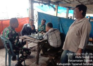 Angkola Timur – Babinsa Koramil 18/Pargarutan Kodim 0212/Tapsel Peltu Amar Bakti Harahap melaksanakan monitor wilayah dan komsos...