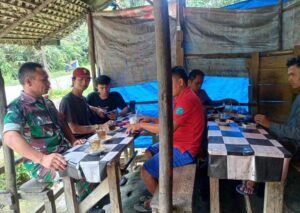 Sipirok – Babinsa Koramil 03/Sipirok Kodim 0212/Tapsel Serka Parlinggoman Napitupulu melaksanakan Komsos berkumpul dengan warga masyarakat sembari...