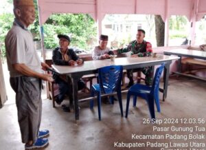 Sosa Timur – Babinsa Koramil 09/Sosa Kodim 0212/Tapsel Sertu Heri Agusman Harahap hadir mewakili Danramil dalam kegiatan...