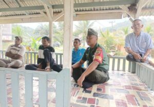 Tambangan – Babinsa Koramil 14/Kotanopan Kodim 0212/Tapsel Kopda Rikardo Zalukhu melakukan Komunikasi Sosial (Komsos) berkumpul dengan warga...