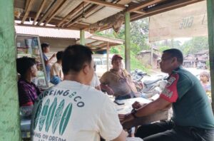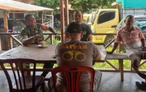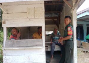 Tambangan – Babinsa Koramil 14/Kotanopan Kodim 0212/Tapsel Kopda Rikardo Zaluku melaksanakan komunikasi sosial (komsos) berkumpul dan berbincang...