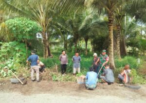 Angkola Muaratais – Babinsa Koramil 11/BA Kodim 0212/Tapsel Koptu Anwar Hutasuhut melaksanakan kegiatan gotong royong pembersihan rumput...