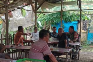 Barumun Barat – Babinsa Koramil 10/Barteng Serda Nuriyadi melaksanakan komunikasi sosial (Komsos) dengan warga desa binaannya untuk...