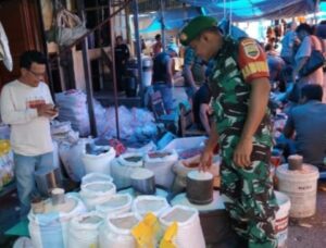 Sipirok – Babinsa Koramil 03/Sipirok kodim 0212/Tapsel Serma Andoko melaksanakan komsos dengan pedagang di pasar tradisional Sipirok...