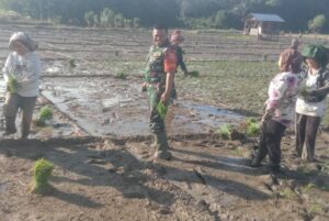 Batang Onang – Babinsa Koramil 07/Sosopan Kodim 0212/Tapsel Koptu Hendrisayah Hasibuan turun langsung ke sawah membantu petani...